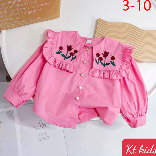 A471508 - (21/11)Áo sơ mi cho bé gái vải kate cotton nhẹ hình thêu hoa_Size 3-10
