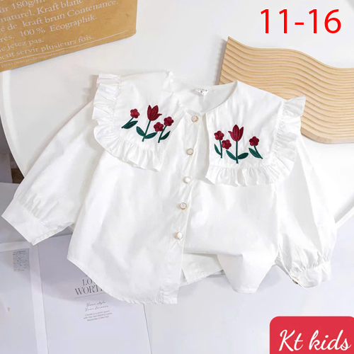 A471510 - (21/11)Áo sơ mi cho bé gái vải kate cotton nhẹ hình thêu hoa_Size 11-16