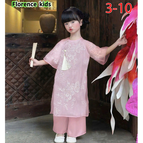 A471513 - Áo dài tơ thêu cao cấp lót lụa duyên dáng phối cùng quần lụa latin_Size 3-10