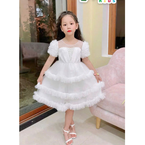 A471875 - Đầm công chúa thân phi mờ, xếp ly tỉ mỉ, đính hạt châu tạo tầng , tạo bèo_Size 1-10