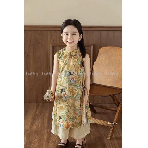 A472265 - Set áo dài siêu xinh hất liệu đũi 3D mát lịm, hoạ tiết cô tiên siêu xinh_Size 1-10