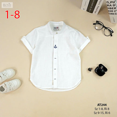 A472590 - Áo sơ mi cổ trụ tay ngắn chất liệu linen cao cấp với chi tiết mỏ neo xinh xắn_Size 1-8