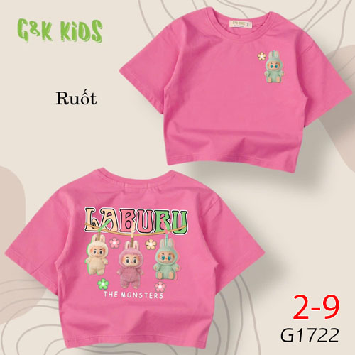 A473533 - Áo bé gái phom lững in 3 Labubu thun cotton 4c_Size 2-9