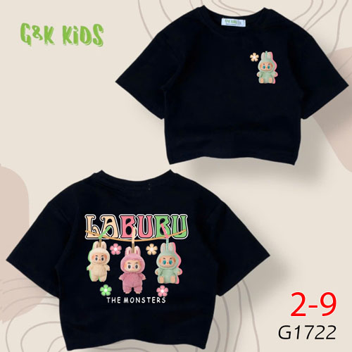 A473534 - Áo bé gái phom lững in 3 Labubu thun cotton 4c_Size 2-9