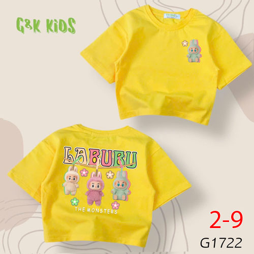 A473536 - Áo bé gái phom lững in 3 Labubu thun cotton 4c_Size 2-9