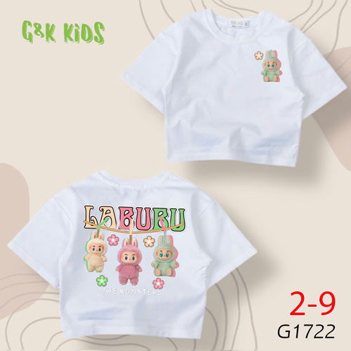 A473544 - Áo bé gái phom lững in 3 Labubu thun cotton 4c_Size 2-9