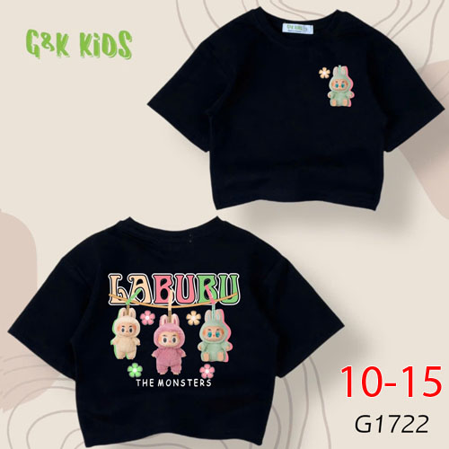 A473555 - Áo bé gái phom lững in 3 Labubu thun cotton 4c_Size 10-15
