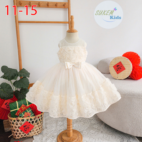 A474057 - Đầm may cắt phối nguyên đầm ren hoa hồng cắt laser tùng may 4 lớp 2 lưới cắt nối tầng nhún