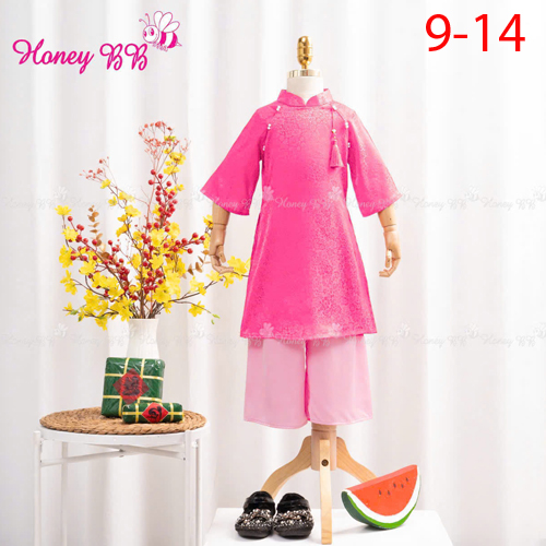 A475067 - Set áo dài bé gái áo gấm lụa mềm mại quần Latinh loại 1 hình in hoa văn nguyên cây_Size 9-