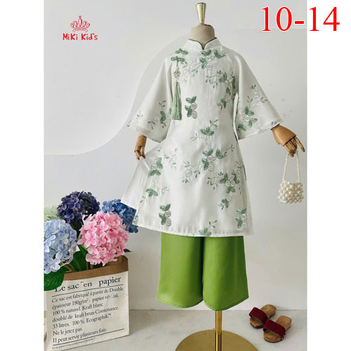 A475221 - Set áo dài 2 tà thêu hoa điểm nhấn thêu hoa tinh tế cổ tàu truyền thống viền bọc cổ tỉ mỉ