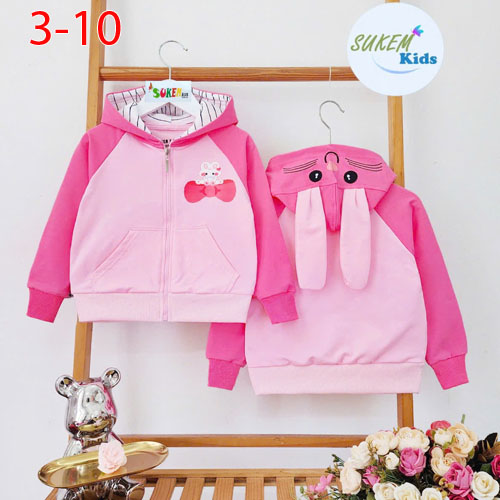 A476458 - Áo khoác Thỏ trước sau may nón đắp tai thỏ thêu có đắp túi 2 bên chất Da cá coton 4c bo ta