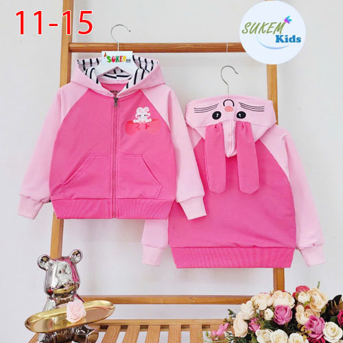 A476467 - Áo khoác Thỏ trước sau may nón đắp tai thỏ thêu có đắp túi 2 bên chất Da cá coton 4c bo ta