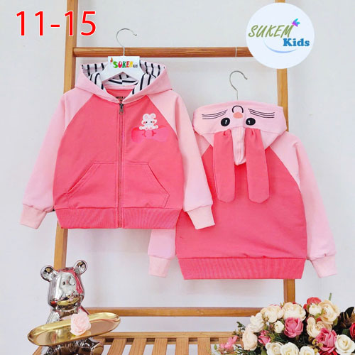 A476468 - Áo khoác Thỏ trước sau may nón đắp tai thỏ thêu có đắp túi 2 bên chất Da cá coton 4c bo ta