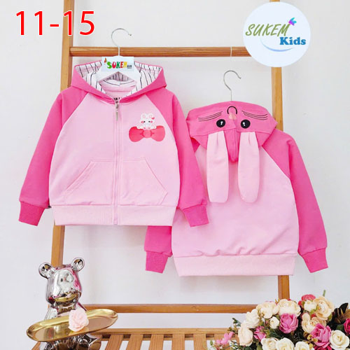A476471 - Áo khoác Thỏ trước sau may nón đắp tai thỏ thêu có đắp túi 2 bên chất Da cá coton 4c bo ta