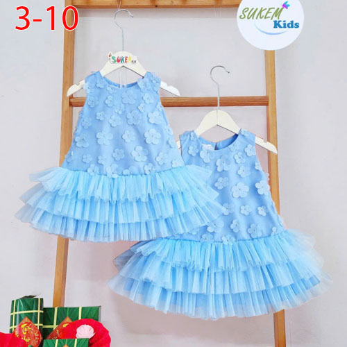 A477388 - Đầm may nguyên ren hoa mai 5d may đuôi cá nhún lưới 3 tầng_Size 3-10