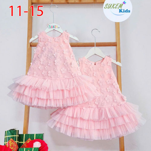 A477394 - (16/12)Đầm may nguyên ren hoa mai 5d may đuôi cá nhún lưới 3 tầng_Size 11-15