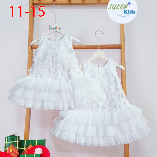 A477395 - Đầm may nguyên ren hoa mai 5d may đuôi cá nhún lưới 3 tầng_Size 11-15
