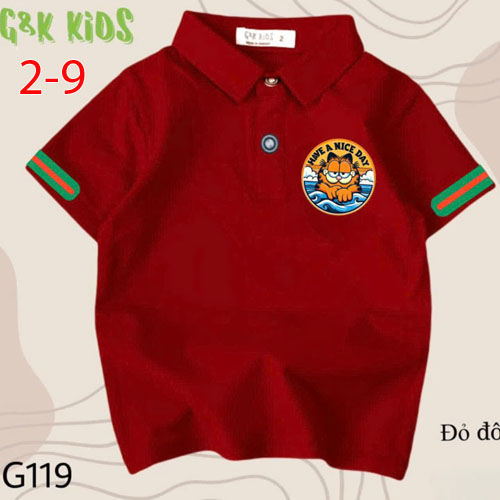 A477927 - Áo cổ trụ bé trai chất thun coton 4c in logo mèo_Size 2-9