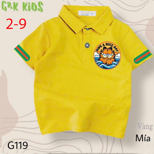 A477929 - Áo cổ trụ bé trai chất thun coton 4c in logo mèo_Size 2-9
