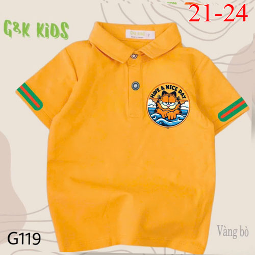 A477965 - Áo cổ trụ bé trai chất thun coton 4c in logo mèo_Size 21-24