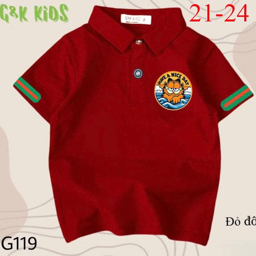 A477966 - Áo cổ trụ bé trai chất thun coton 4c in logo mèo_Size 21-24