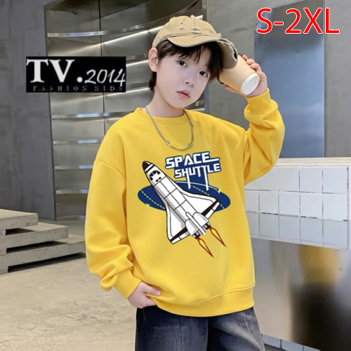 A478720 - Áo dài tay vải thun cotton 4C cho bé trai in tàu vũ trụ_Size S-2XL