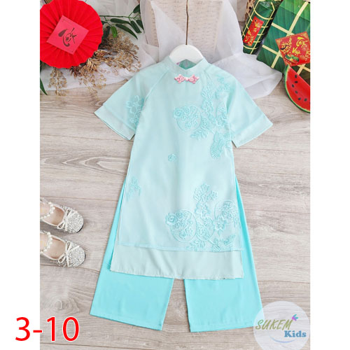 A478952 - Áo dài Thiết kế cách tân áo may 2 tà phối Hoạ tiết thêu hoa in 5d mềm mại nổi bật vải tơ á