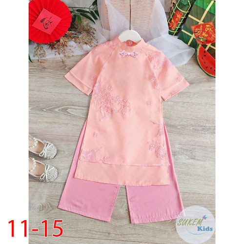 A478955 - Áo dài Thiết kế cách tân áo may 2 tà phối Hoạ tiết thêu hoa in 5d mềm mại nổi bật vải tơ á
