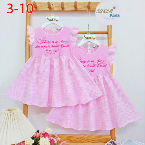 A479047 - Đầm may phối thun đính nơ karo cắt lượn sóng cool xịn tùng xòe nhún bồng bềnh vải karo_Siz