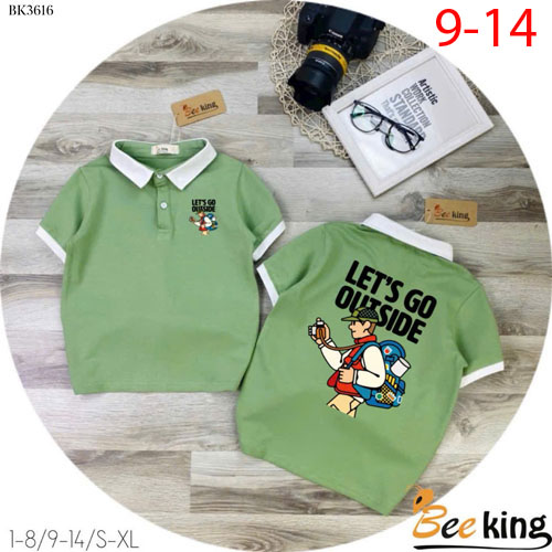 A479077 - Áo bé trai cổ trụ Lets go cotton 4 chiều_Size 9-14