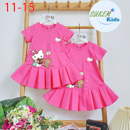 A479179 - Đầm may tay phối tùng dáng A đuôi cá ép hình Kitty kiểu dáng dễ mặc đắp túi_Size 11