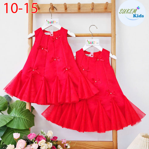 A479357 - Đầm may tay đuôi cá phối lưới cầu vồng đính nơ Phụ kiện 2 lớp pom A đuôi cá nhún lưới cắt