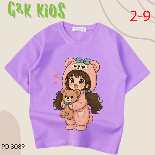 A479371 - Áo bé gái phom dài chất thun coton 4c in cô bé gấu_Size 2-9