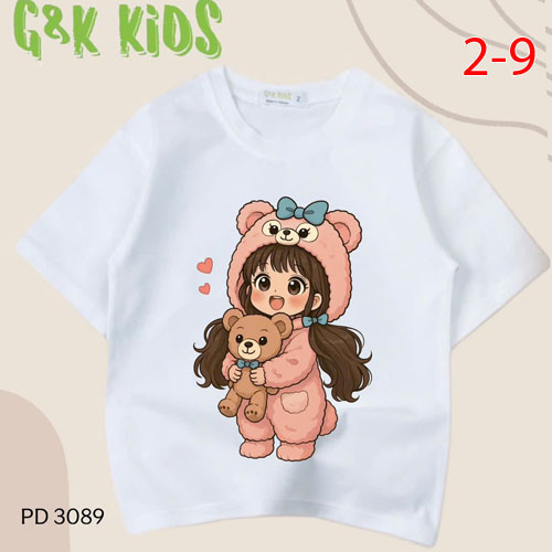 A479376 - Áo bé gái phom dài chất thun coton 4c in cô bé gấu_Size 2-9