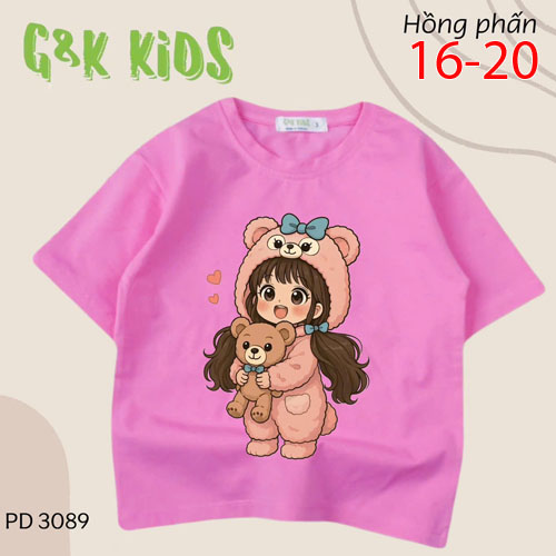 A479402 - Áo bé gái phom dài chất thun coton 4c in cô bé gấu_Size 16-20