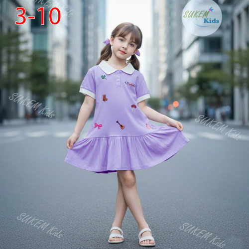 A479684 - (16/12)Đầm thun cổ trụ may phối viền Thêu họa tiết_Size 3-10