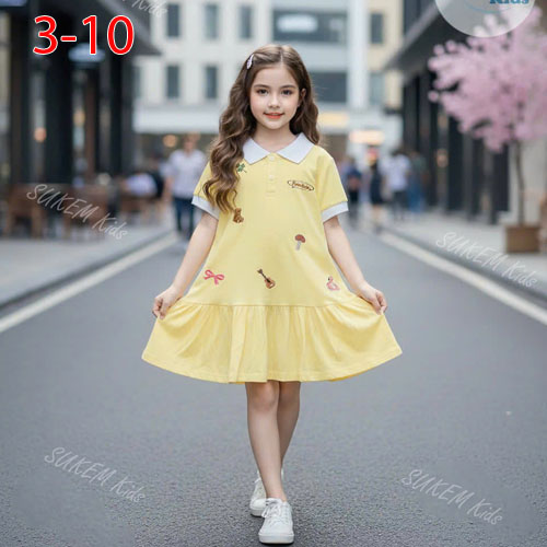 A479685 - (16/12)Đầm thun cổ trụ may phối viền Thêu họa tiết_Size 3-10