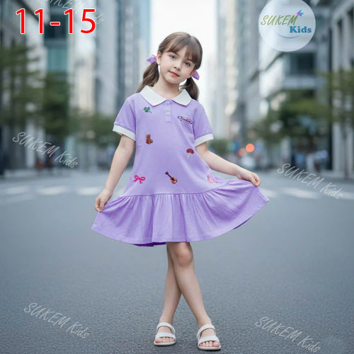 A479687 - (16/12)Đầm thun cổ trụ may phối viền Thêu họa tiết_Size 11-15