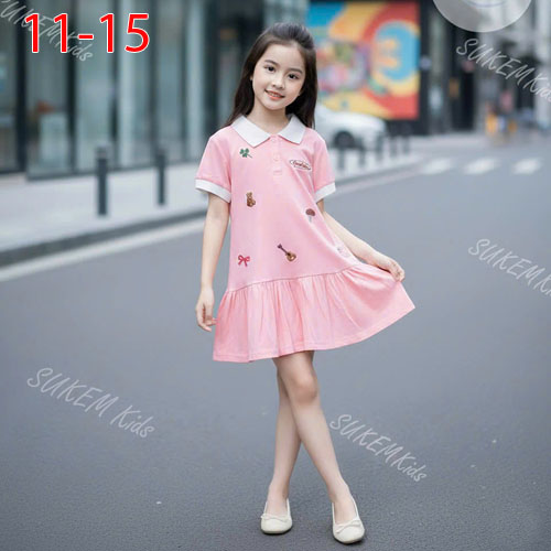 A479689 - (16/12)Đầm thun cổ trụ may phối viền Thêu họa tiết_Size 11-15