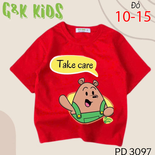 A479743 - Áo bé gái phom dài chất thun coton 4c in gấu nâu Take care_Size 10-15
