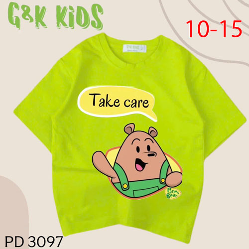 A479745 - Áo bé gái phom dài chất thun coton 4c in gấu nâu Take care_Size 10-15