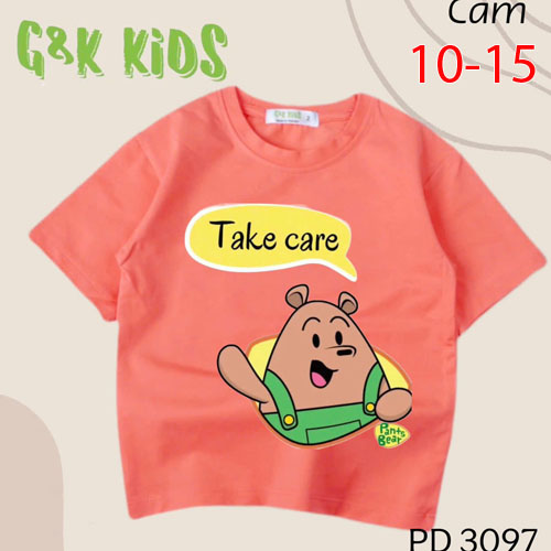 A479749 - Áo bé gái phom dài chất thun coton 4c in gấu nâu Take care_Size 10-15