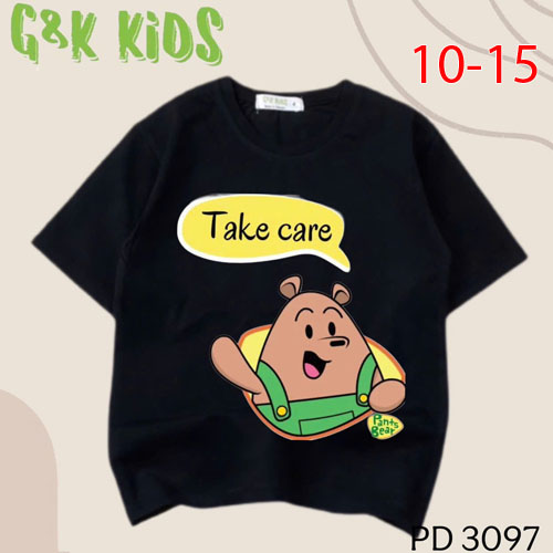 A479751 - Áo bé gái phom dài chất thun coton 4c in gấu nâu Take care_Size 10-15