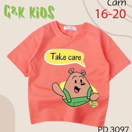 A479762 - Áo bé gái phom dài chất thun coton 4c in gấu nâu Take care_Size 16-20