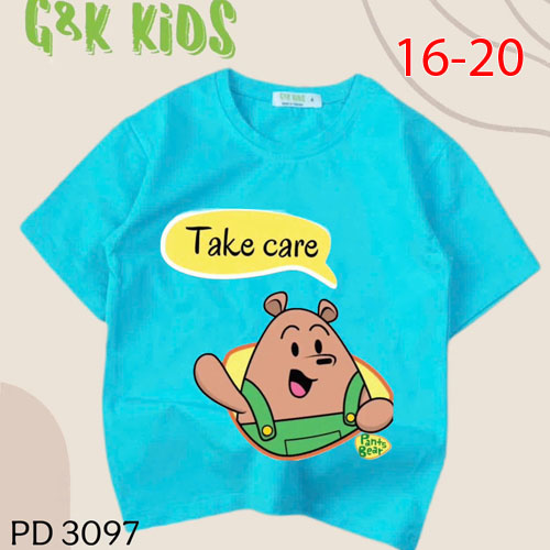 A479763 - Áo bé gái phom dài chất thun coton 4c in gấu nâu Take care_Size 16-20