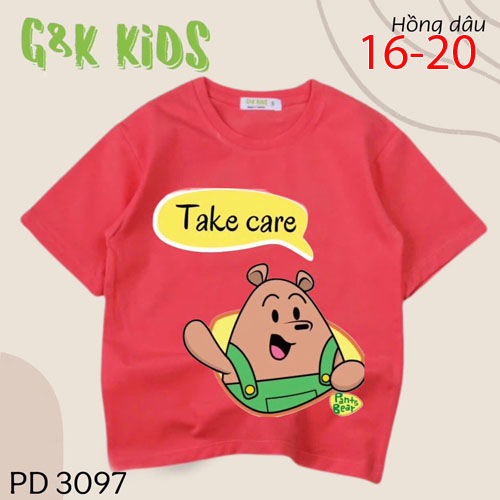 A479765 - Áo bé gái phom dài chất thun coton 4c in gấu nâu Take care_Size 16-20