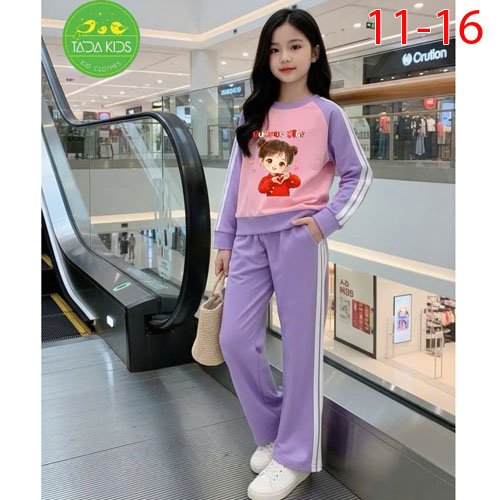 A479809 - Bộ dài quần suông chạy dây sọc thể thao chất cotton in tổng hợp_Size 11-16