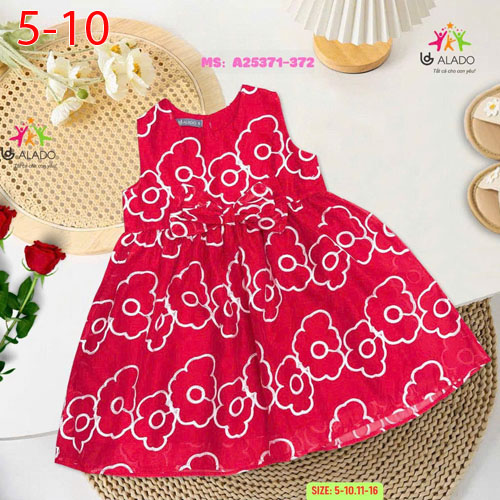 A479833 - Đầm ren hoa đính nơ cho bé diện Tết thun cotton 4c_Size 5-10