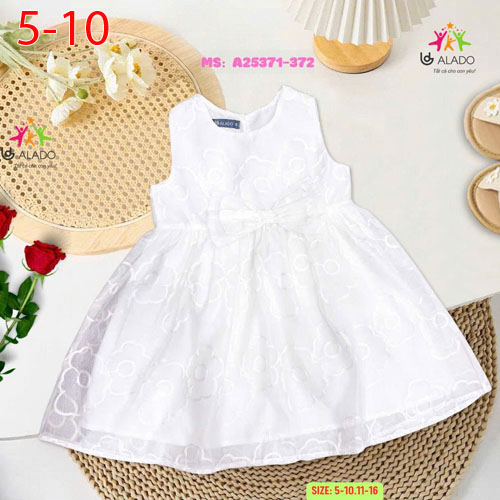 A479834 - Đầm ren hoa đính nơ cho bé diện Tết thun cotton 4c_Size 5-10