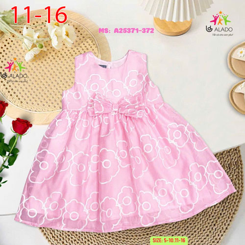 A479838 - Đầm ren hoa đính nơ cho bé diện Tết thun cotton 4c_Size 11-16